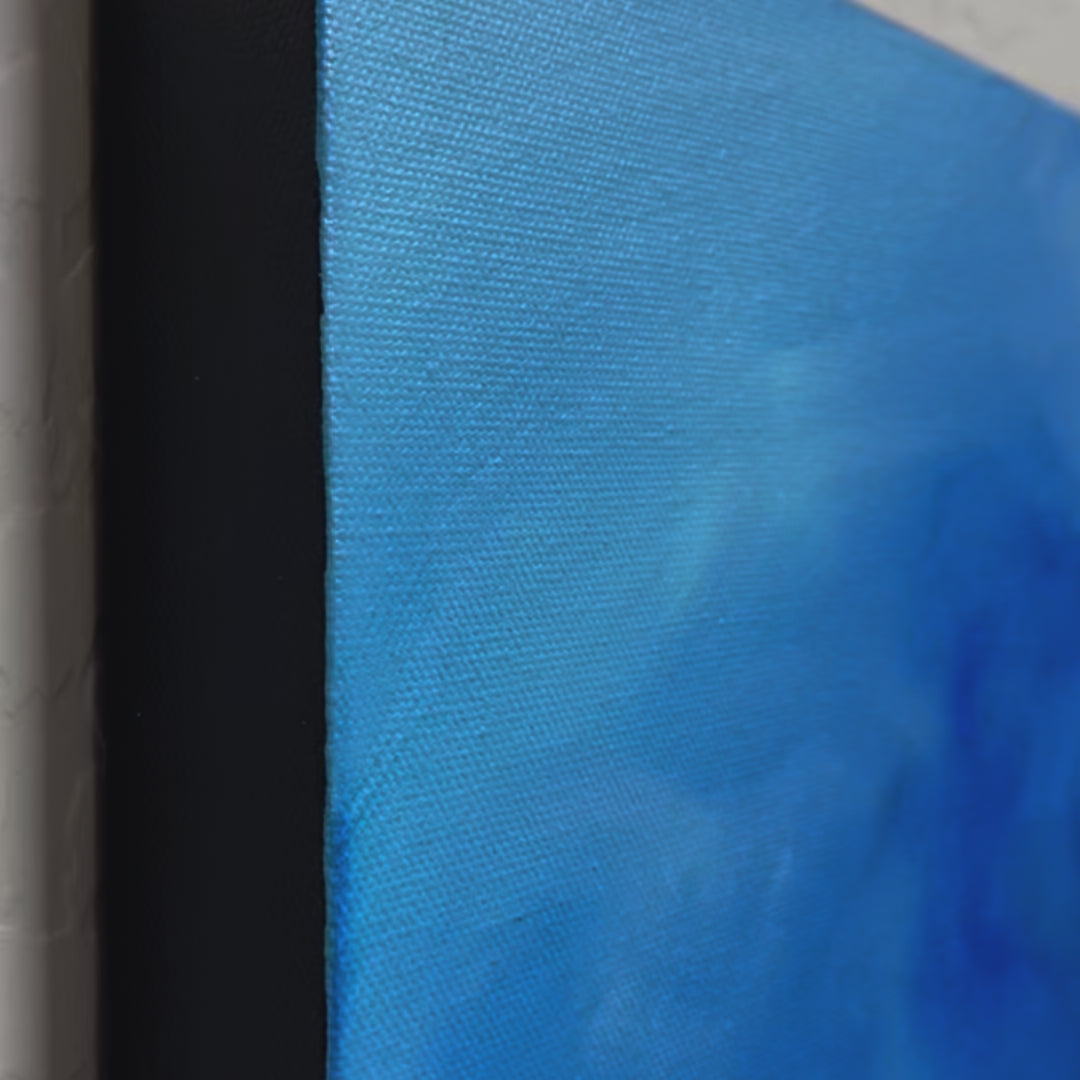 The edges of this painting are painted black, and comes with hanging hardware, ready to display on your wall upon arrival.