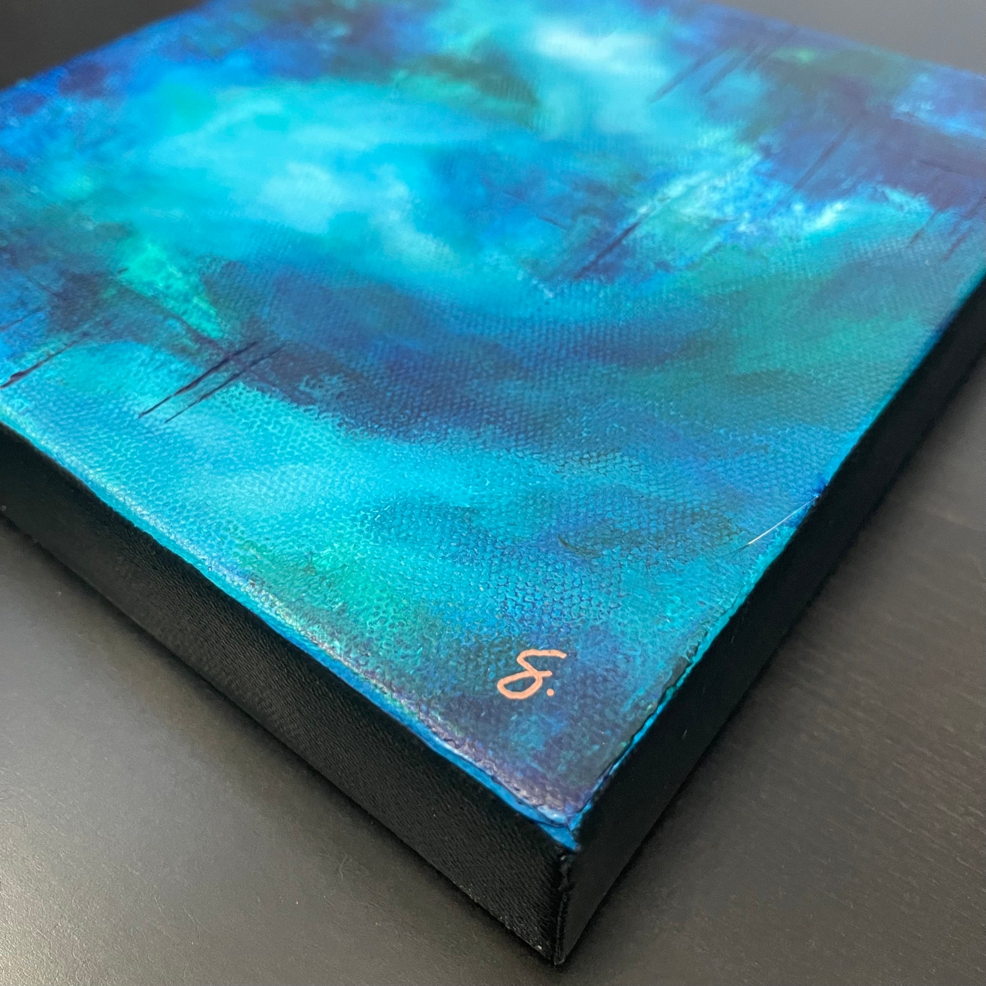 The edges of this painting are painted black, and comes with hanging hardware, ready to display on your wall upon arrival.
