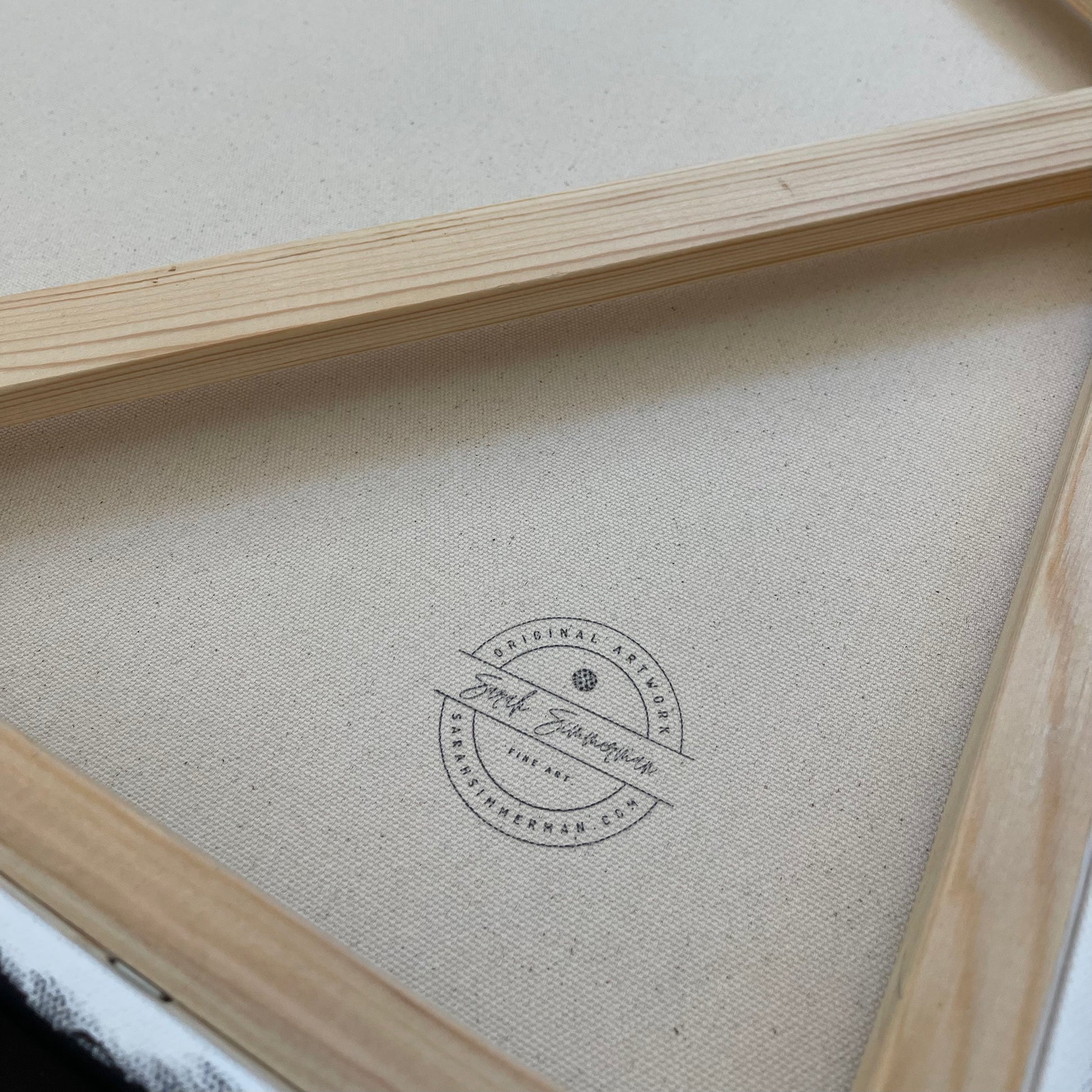 The edges of this painting are painted black, and comes with hanging hardware, ready to display on your wall upon arrival.