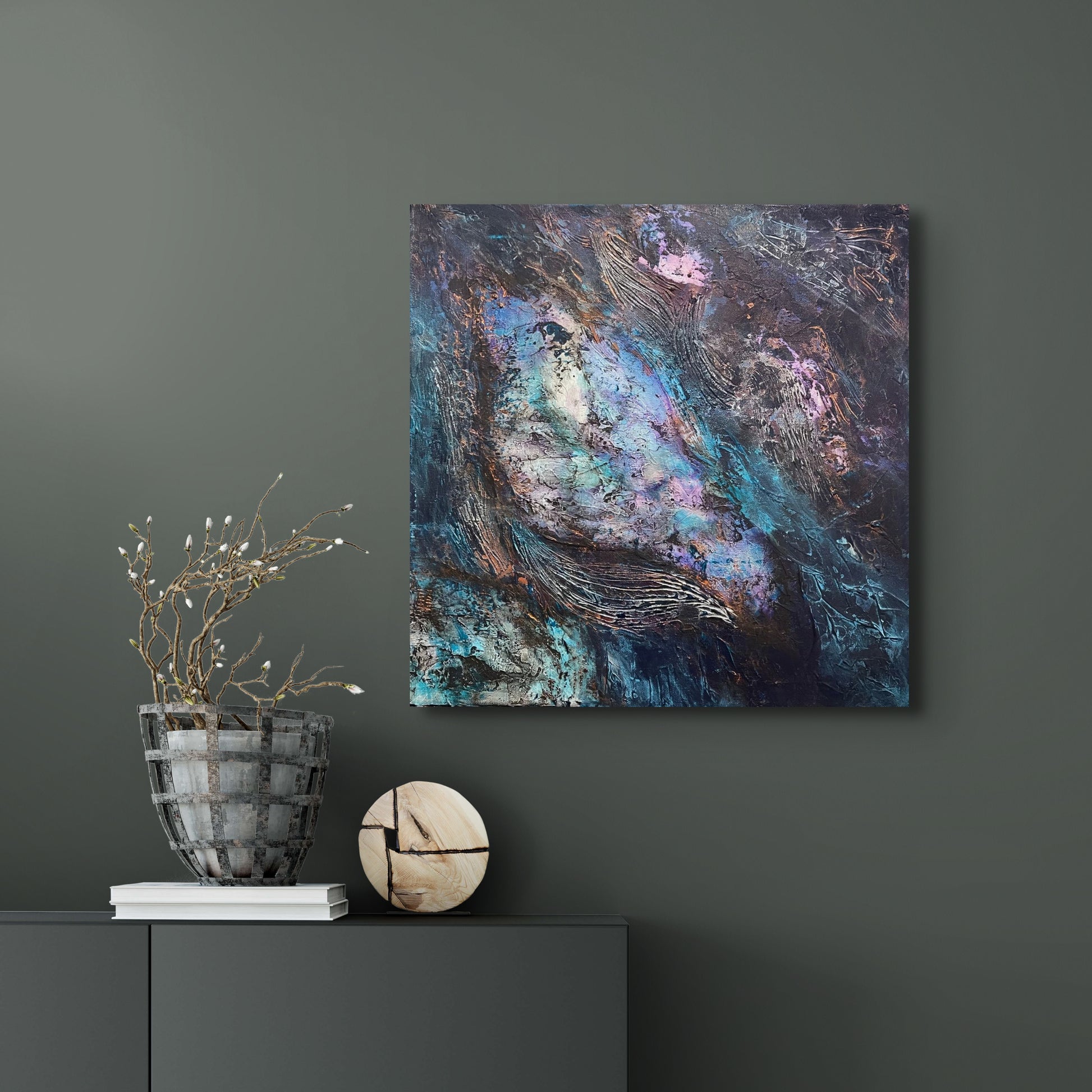 Immerse yourself in the cosmic beauty of Nebula, an 18" x 18" acrylic painting that captures the essence of a distant galaxy.