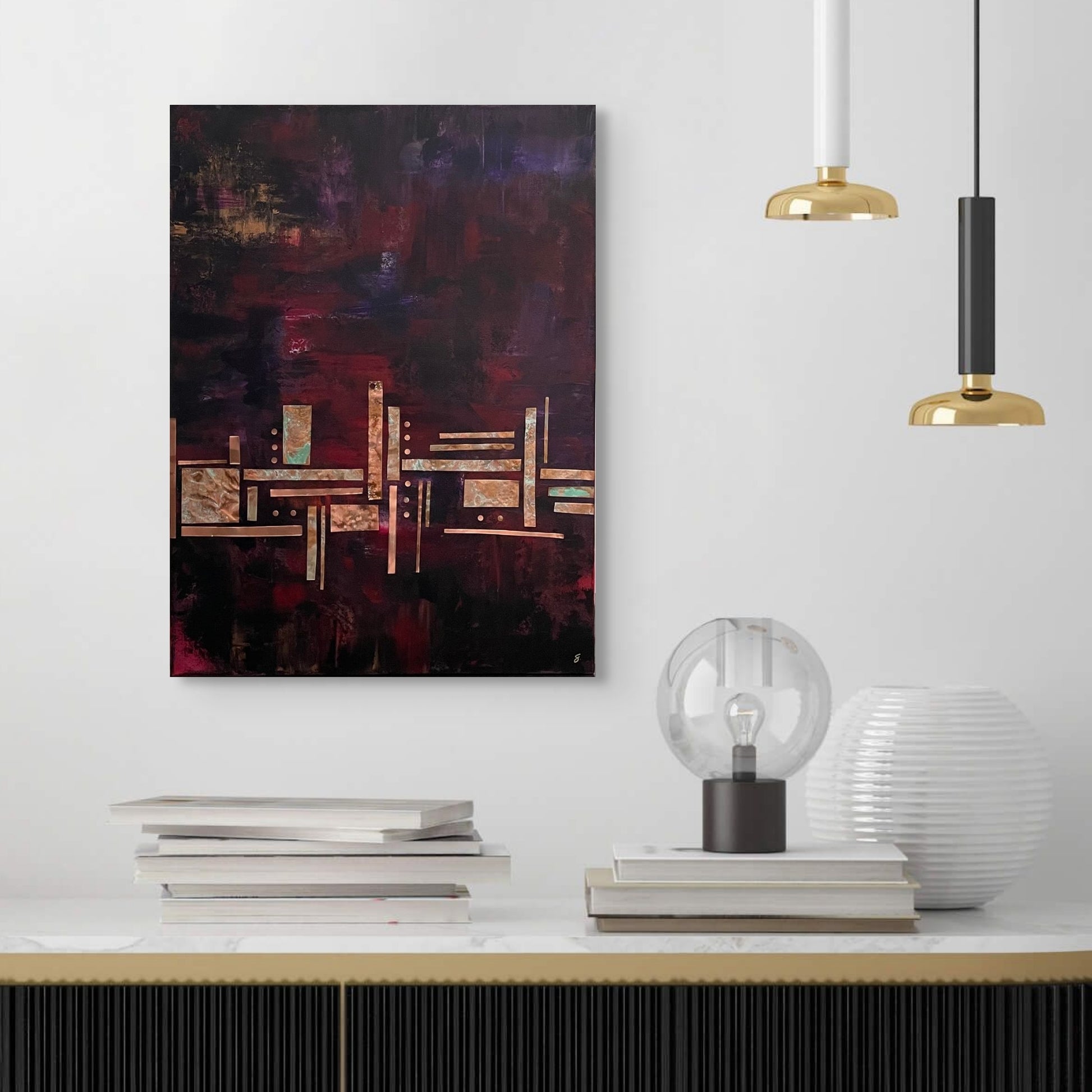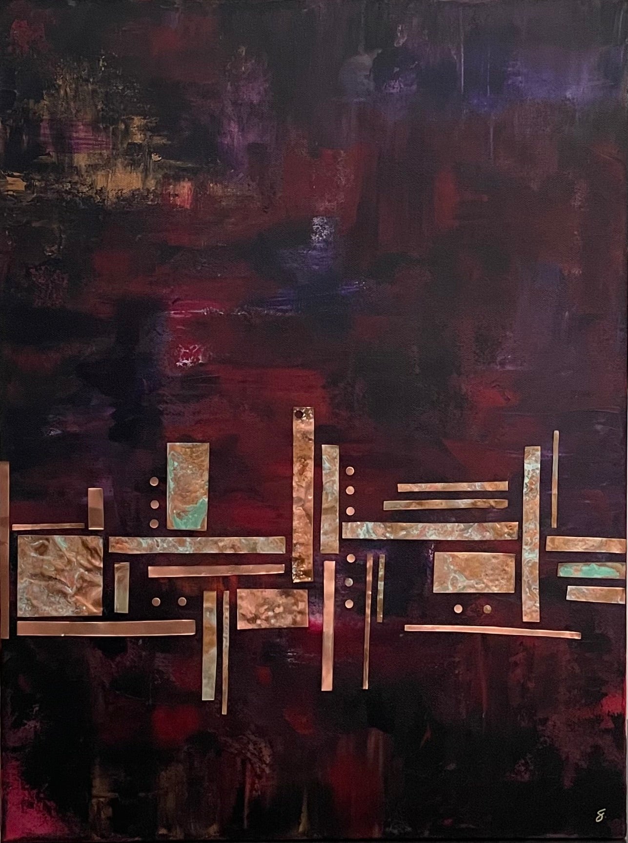 - Original acrylic painting and copper on gallery wrapped canvas.