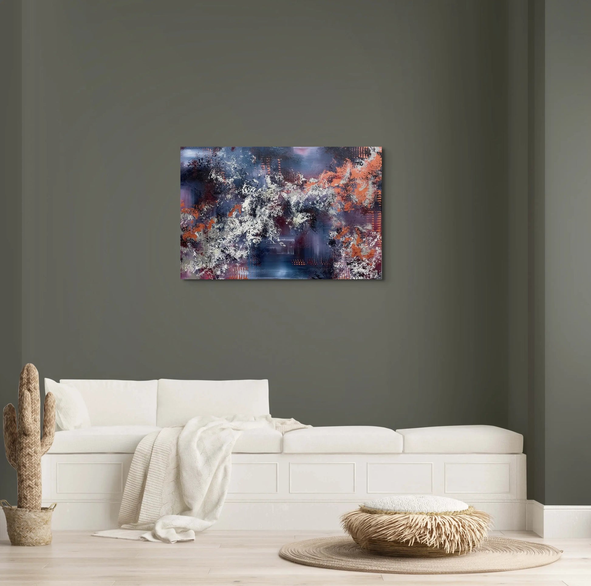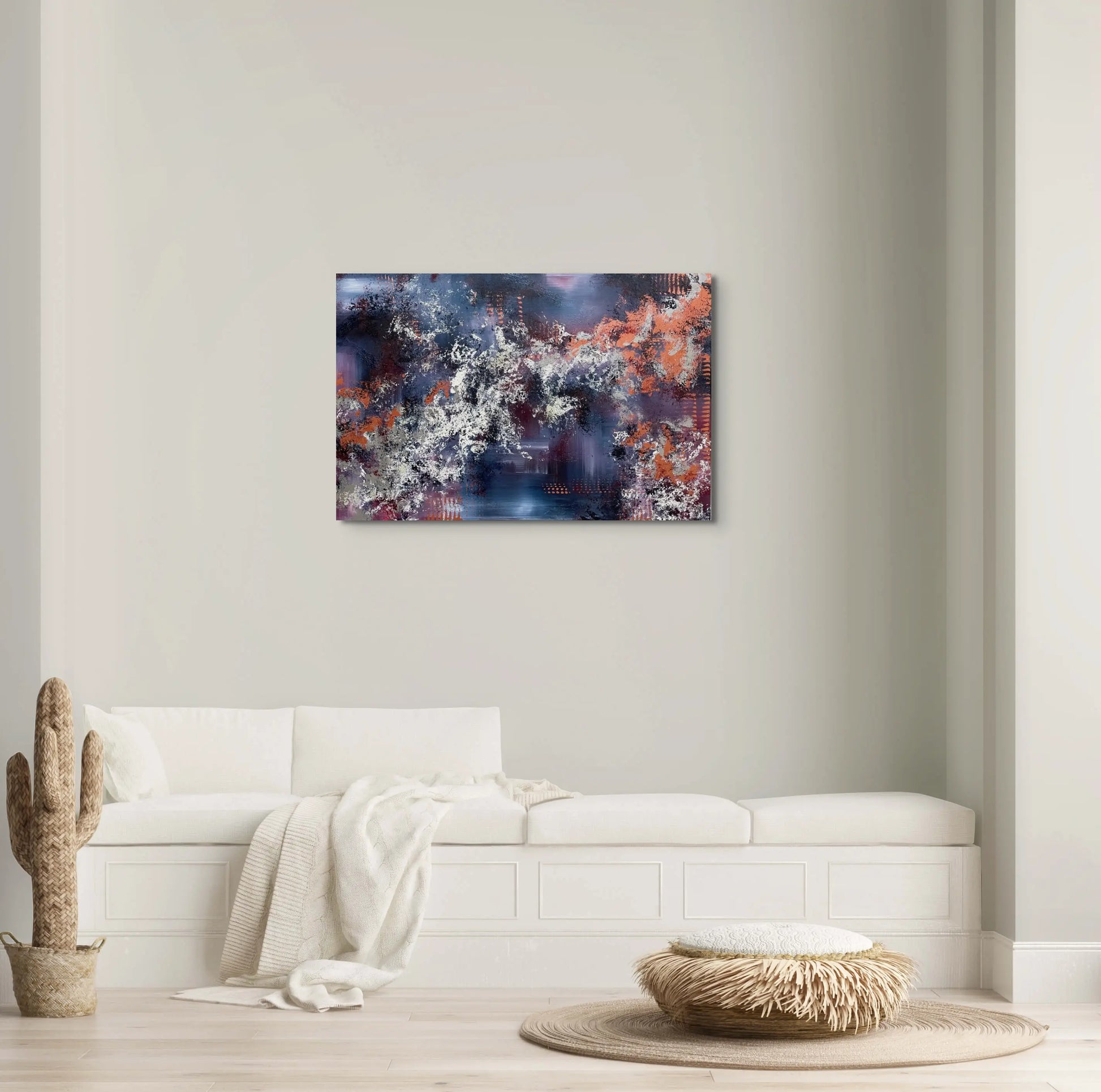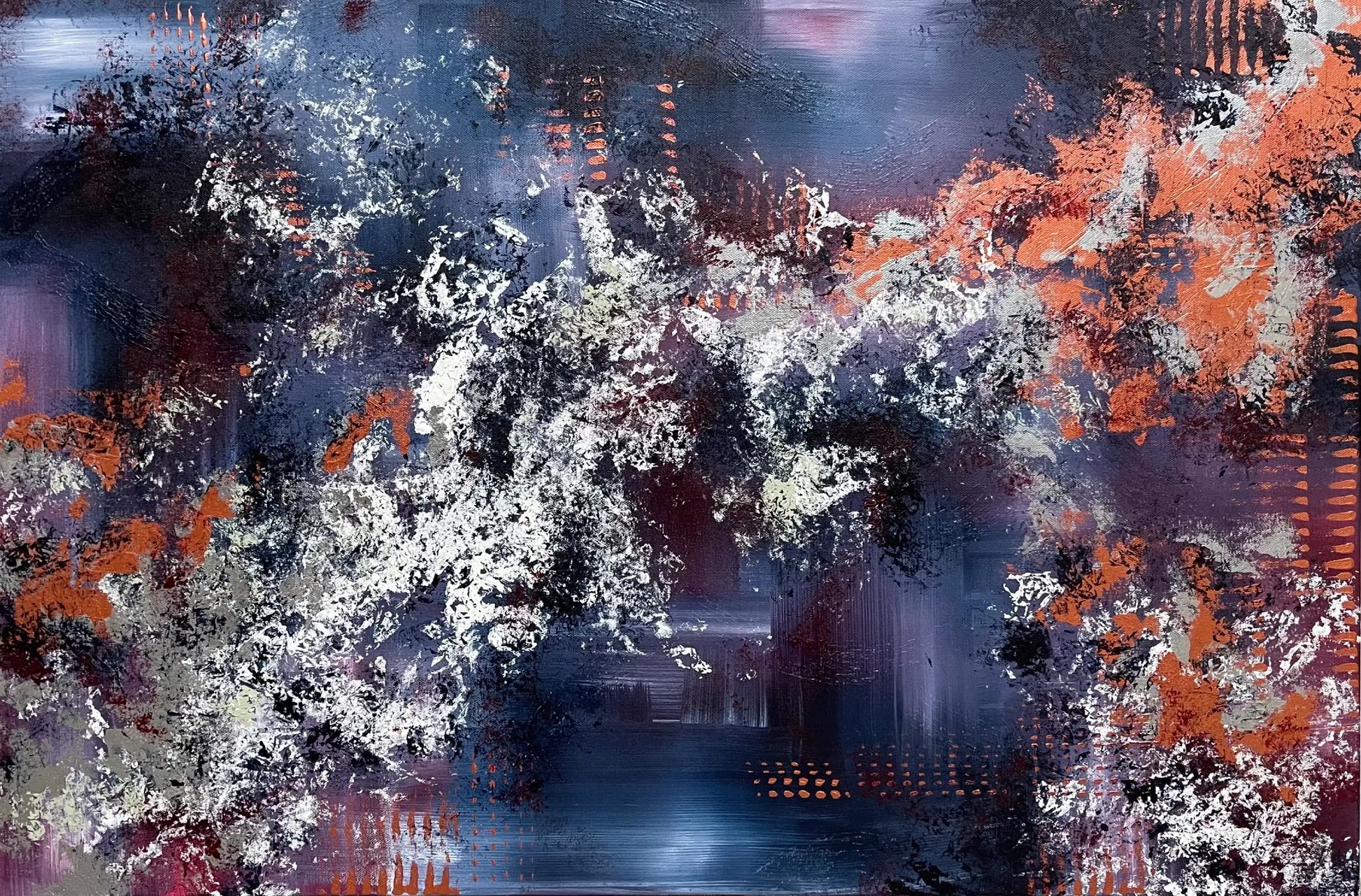 The edges of this painting are painted black, and comes with hanging hardware, ready to display on your wall upon arrival.